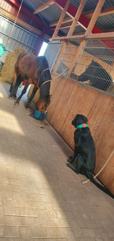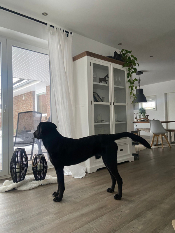 Neufundländer- Ridgeback Mix Kenzo schickt uns gleich einen Gruß aus dem neuen zu Hause und von seinem Rudel.